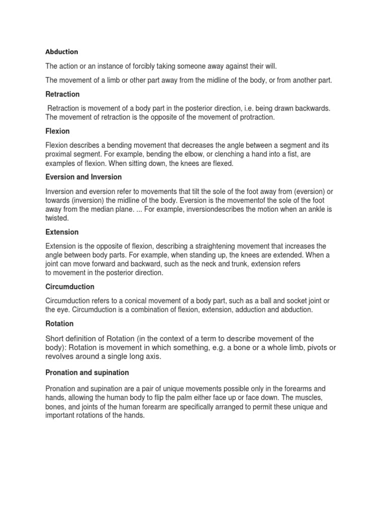 Abduction Retraction Anatomical Terms Of Motion Anatomical Terms Of Location